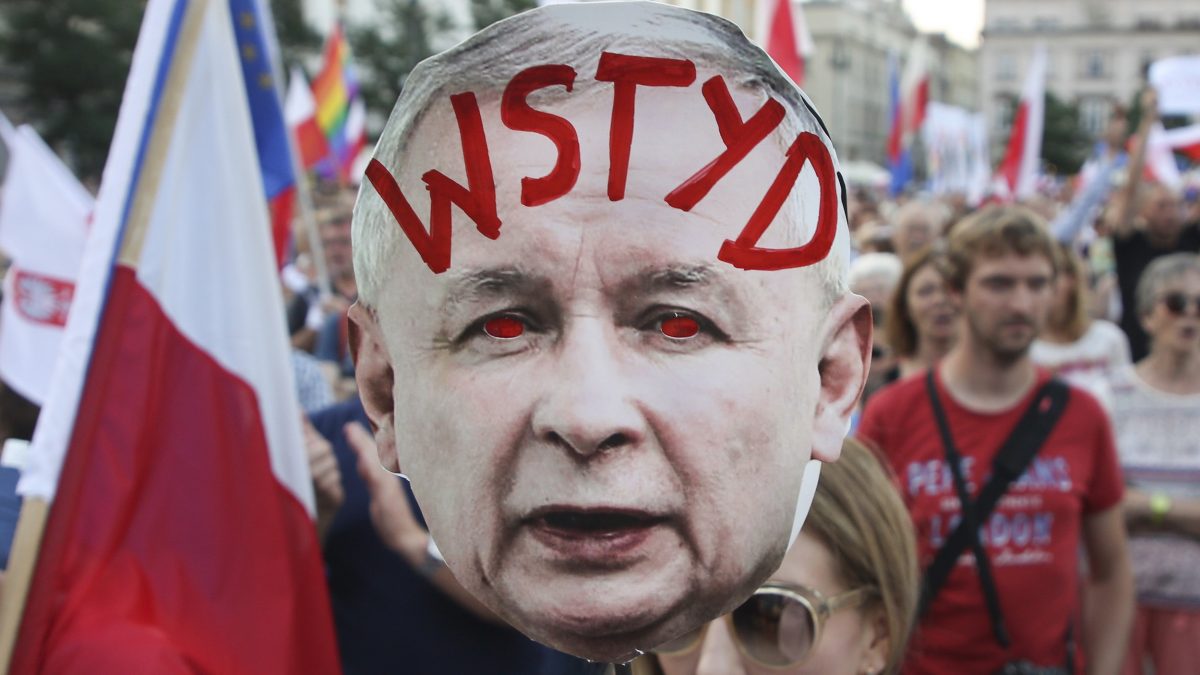 Borítókép: „Szégyen” felirat egy Jarosław Kaczyński-papírmaszkon Krakkóban. Fotó: NurPhoto/Beata Zawrzel