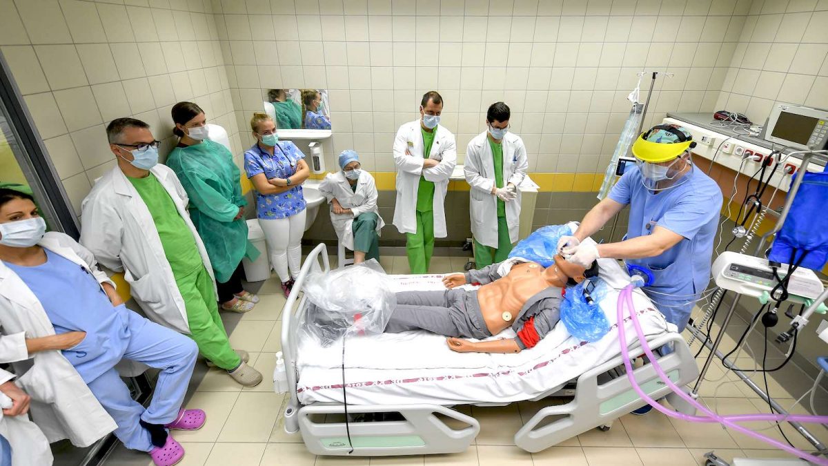 Nyitókép: speciális szimulációs szobában gyakorolják a koronavírus-fertőzött betegek ellátását a Debreceni Egyetem Klinikai Központ Aneszteziológiai és Intenzív Terápiás Klinikáján 2020. április 6-án. Fotó: MTI/Czeglédi Zsolt