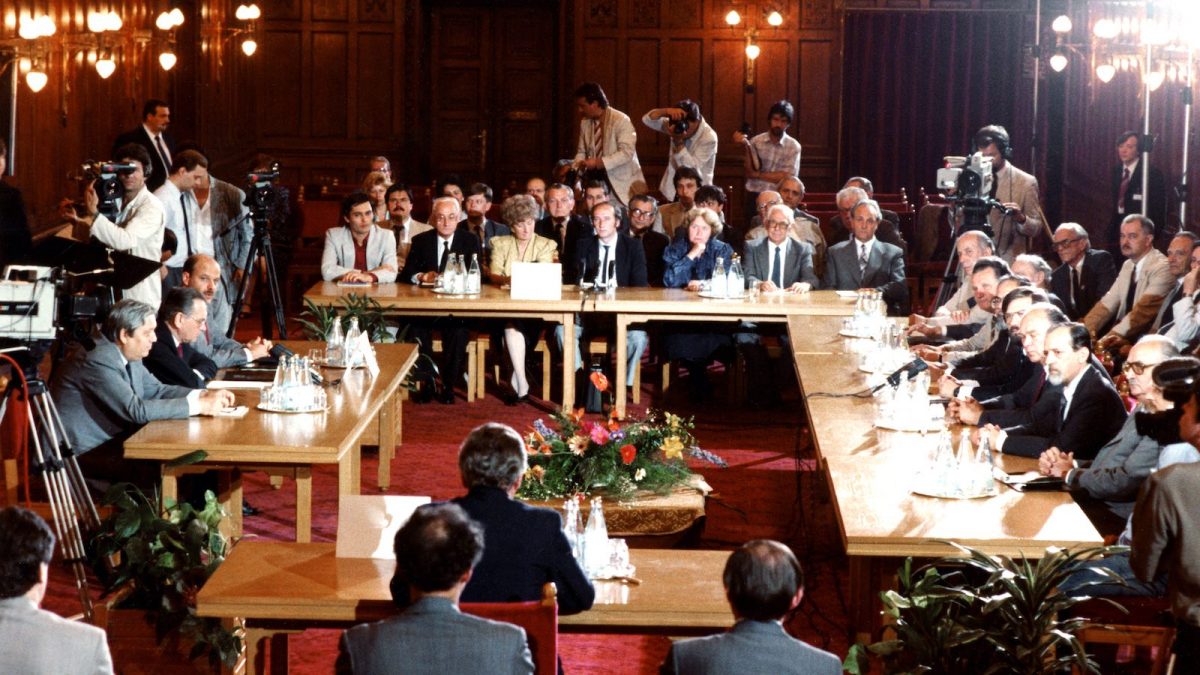 Nyitókép: a Nemzeti Kerekasztal ülése 1989. június 13-án. Fotó: AFP/MTI/Soós Lajos