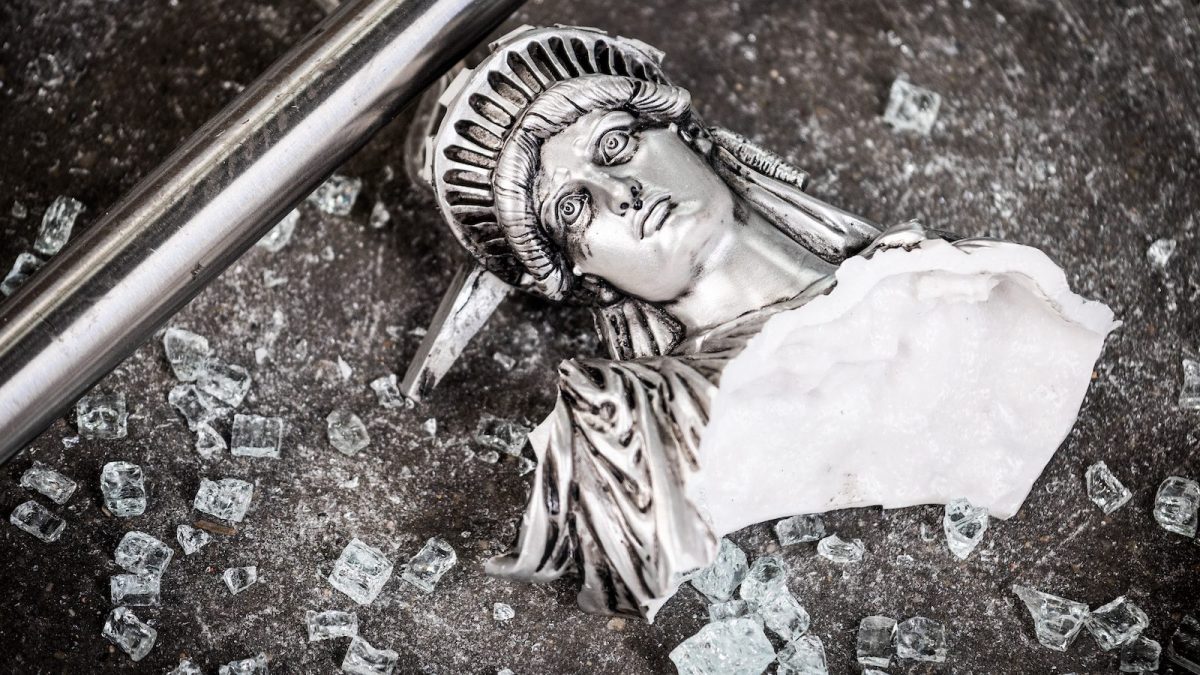 Nyitókép: szuvenír Szabadság-szobor torzója egy betört New York-i kirakatnál 2020. június 2-án. Fotó: AFP/Johannes Eisele