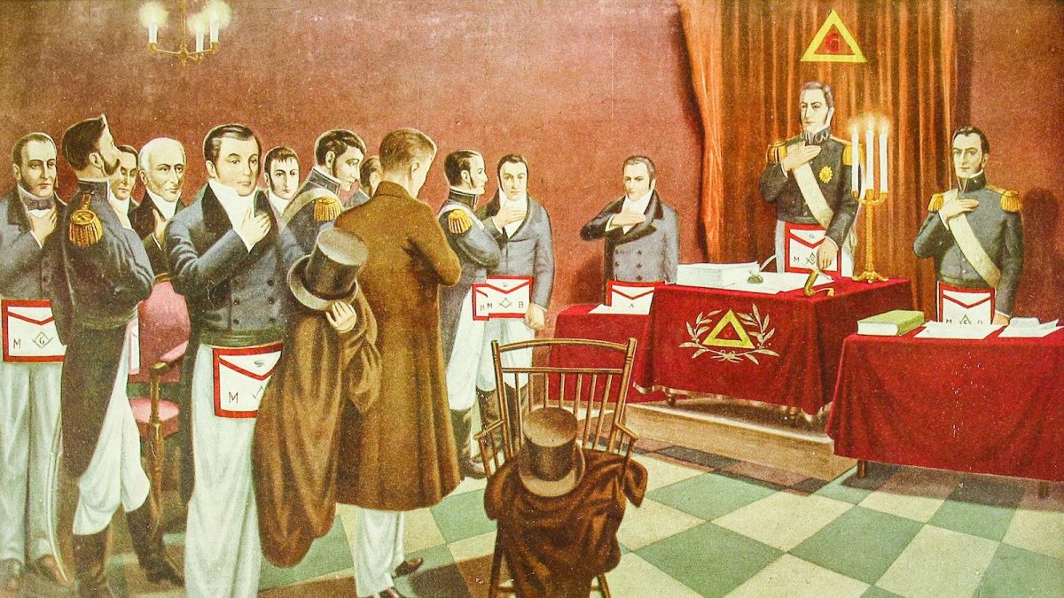 Nyitókép: ismeretlen művész festménye egy francia katonai szabadkőműves páholy gyűléséről a párizsi Szabadkőműves Múzeum gyűjteményéből. Forrás: Photo12/AFP