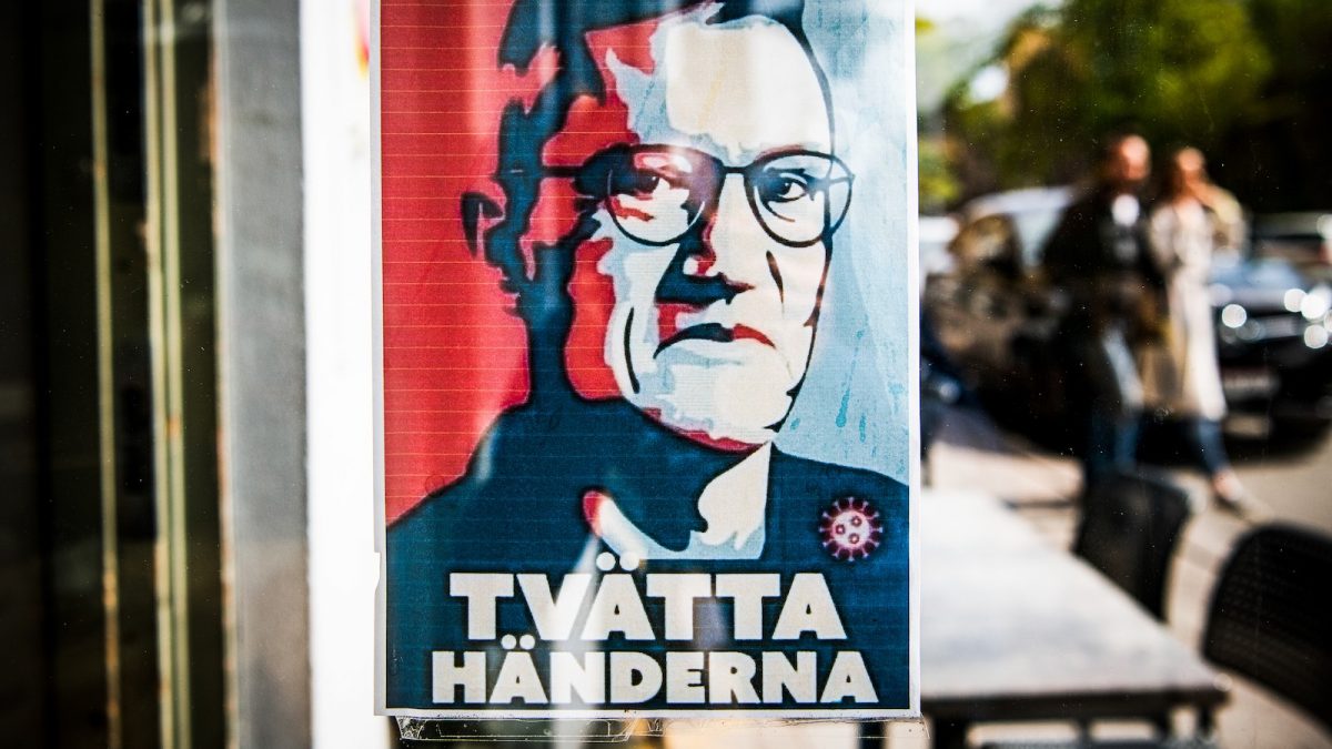 Nyitókép: Anders Tegnellt ábrázoló poszter egy stockholmi étterem bejáratánál 2020. május 10-én. Fotó: AFP/Jonathan Nackstrand