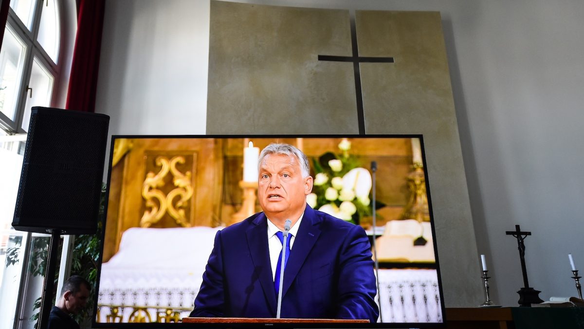 Nyitókép: Orbán Viktor beszédet mond a Páneurópai Piknik harmincadik évfordulója alkalmából a soproni evangélikus templomban 2019. augusztus 19-én (a sajtó számára fenntartott épületrészből fényképezve). Fotó: AFP/Kisbenedek Attila