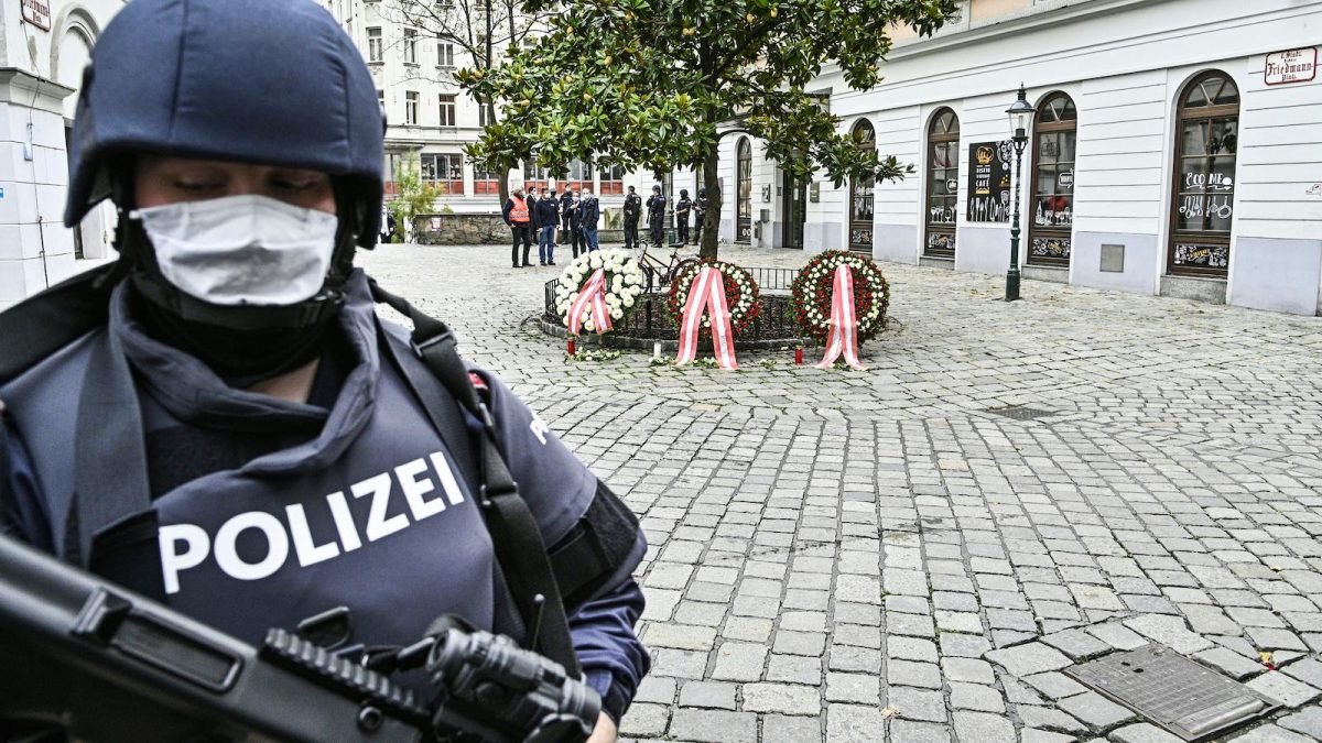 Nyitókép: osztrák rendőr a terrortámadás áldozatainak emlékére elhelyezett koszorúk előtt Bécs belvárosában 2020. november 3-án. Fotó: AFP/APA/Hans Punz