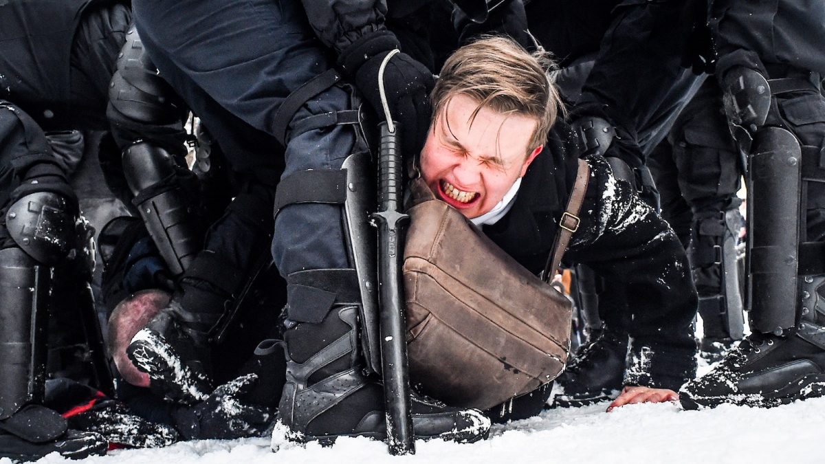 Nyitókép: rendőrök tepernek földre ellenzéki tüntetőket az oroszországi Szentpéterváron 2021. január 31-én. Fotó: AFP/Olga Malceva