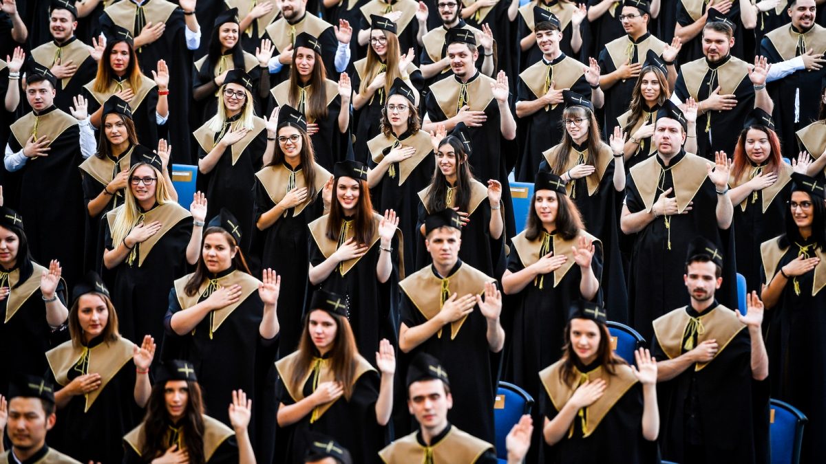 Nyitókép: végzős hallgatók fogadalomtétele a Debreceni Egyetem tanévzáró ünnepségén a debreceni Nagyerdei Stadionban 2020. július 4-én. Fotó: MTI/Czeglédi Zsolt