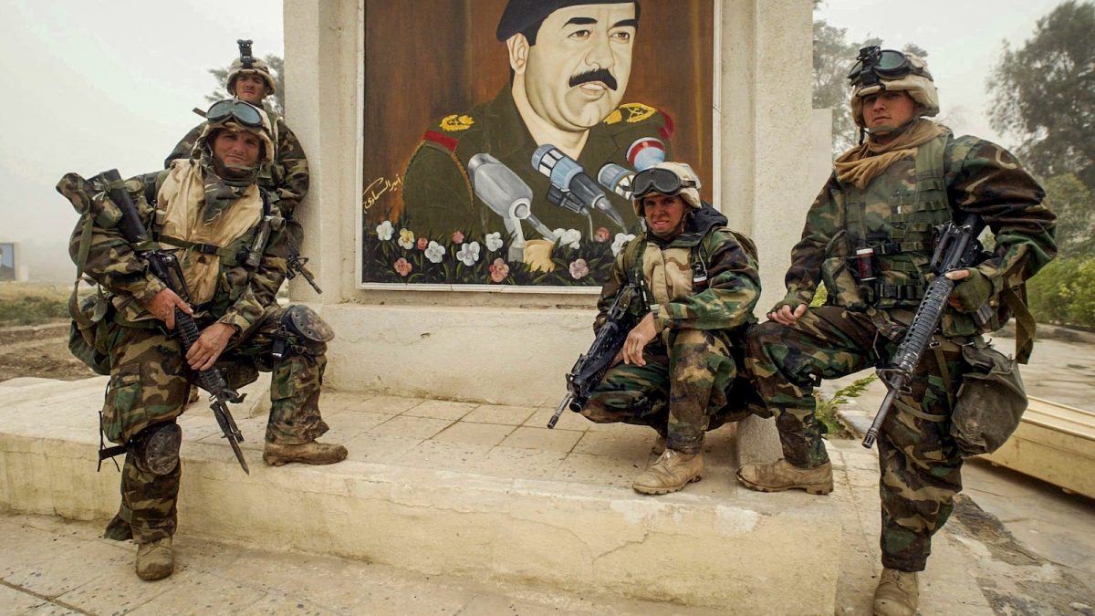 Nyitókép: amerikai tengerészgyalogosok Szaddám Huszein portréja előtt pózolnak a dél-iraki Nászírijában 2003. március 25-én. Fotó: AFP/Cris Bouroncle