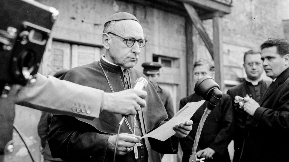 Nyitókép: Mindszenty József felsőpetényi őrizetéből való kiszabadulása után rádióbeszédet tart az Úri utca 62. alatti Prímási palota udvarán. Fotó: Fortepan/ETH Zürich