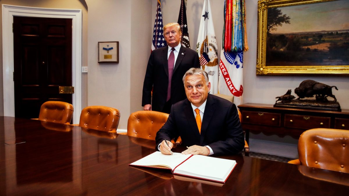 Nyitókép: Orbán Viktor miniszterelnök, Donald Trump amerikai elnök vendége találkozójukon beír a vendégkönyvbe a washingtoni Fehér Ház Roosevelt-termében 2019. május 13-án. Fotó: MTI/Koszticsák Szilárd