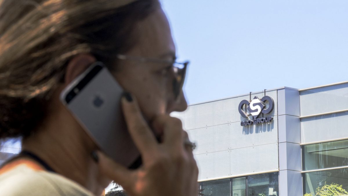 Nyitókép: 2016. augusztus 28-án készült felvétel egy izraeli nőről, aki az NSO-nak otthont adó épület előtt telefonál Tel-Aviv közelében (JACK GUEZ / AFP)