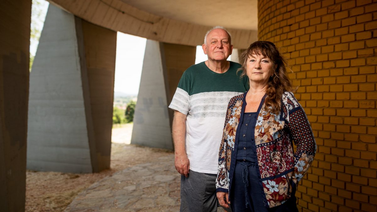 Nyitókép: Varga Ágota és Kovács László az oroszlányi „Szocialista Stonehenge-nél” (fotó: Mudra László)
