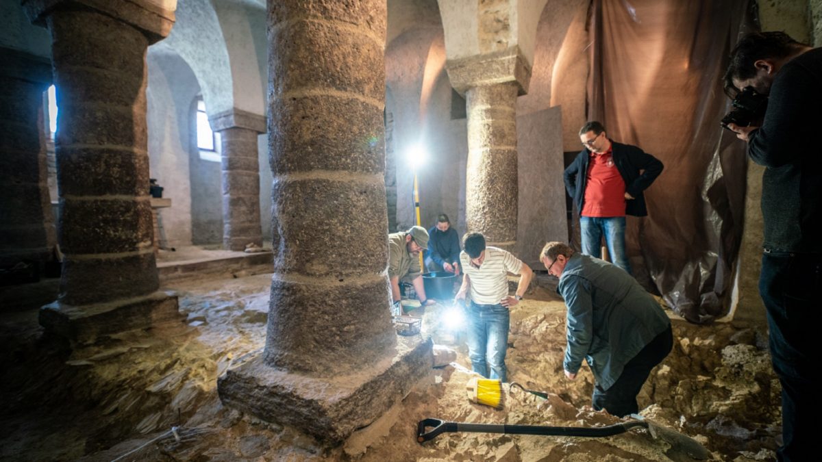 Nyitókép: Régészeti feltárás a tihanyi királykriptában (fotó: Tihanyi Bencés Apátság)