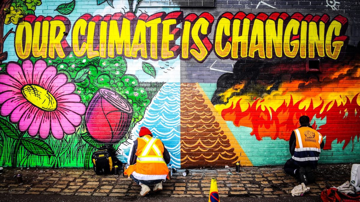 Nyitókép: streetartosok festenek egy falat Glasgowban 2021. október 13-án, a vasárnap kezdődő klímacsúcsra készülve (fotó: AFP/Andy Buchanan)