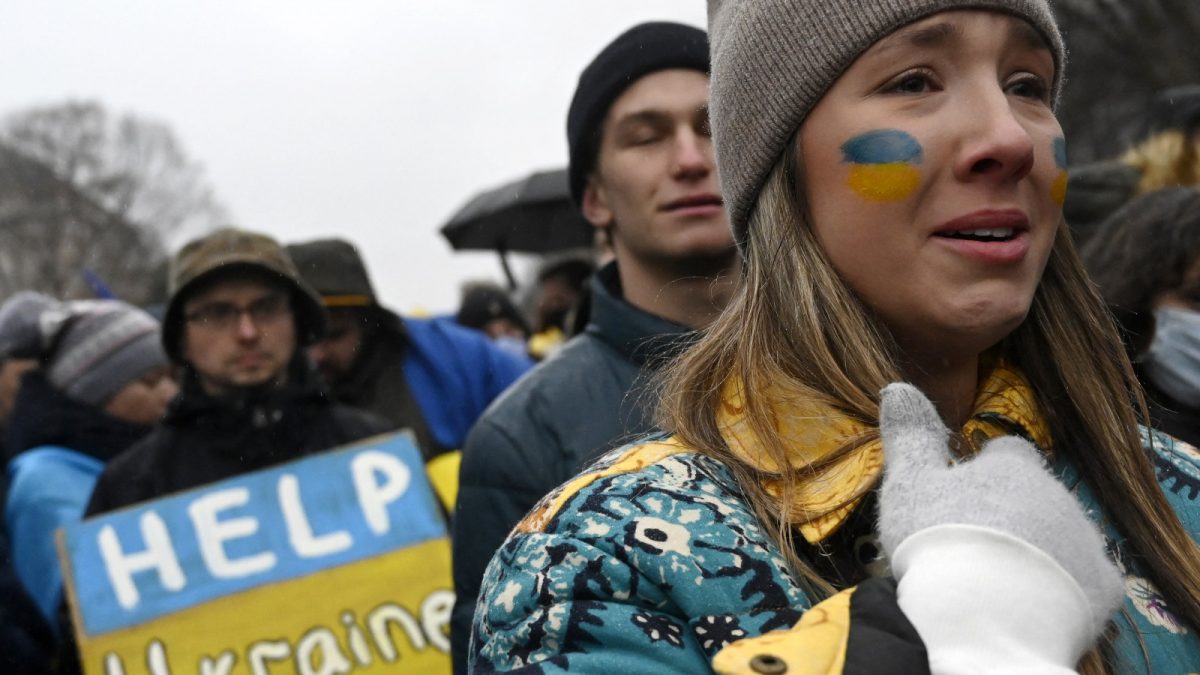 Nyitókép: Tüntetők az orosz agresszió ellen, Ukrajna mellett (forrás: OLIVIER DOULIERY / AFP)