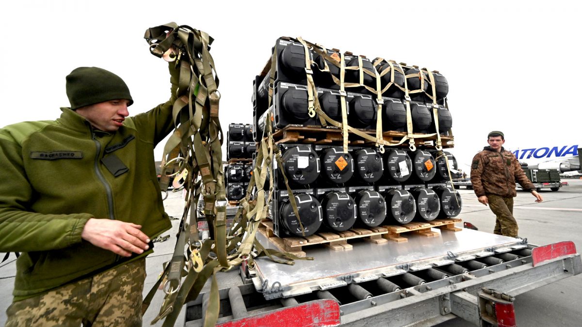 Nyitókép: ukrán katonák pakolnak egy Boeing 747-412 típusú repülőgépből FGM-148 Javelin típusú amerikai páncéltörő rakétákat, amelyet az USA katonai támogatás részeként küldött (a kép 2022. február 11-én készült) Forrás: SERGEI SUPINSKY / AFP