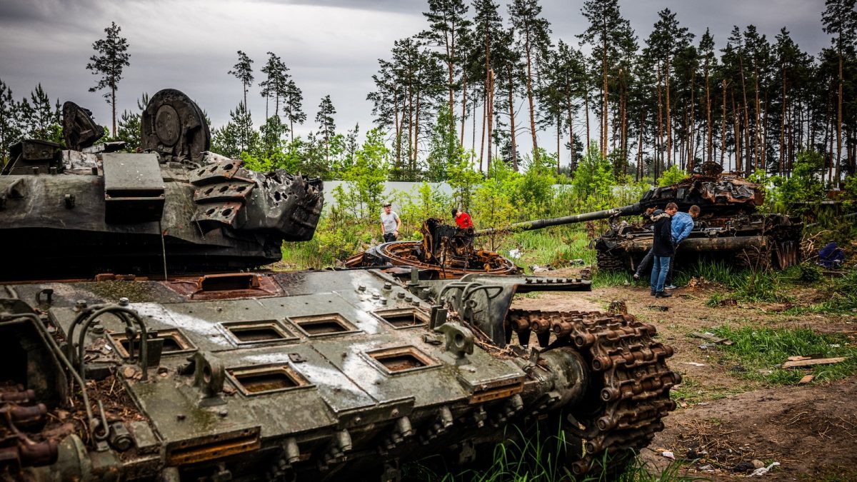 Nyitókép: helyi lakosok megsemmisült orosz harckocsikat vizsgálnak Kijev mellett 2022. május 31-én (fotó: AFP/Dimitar Dilkoff)