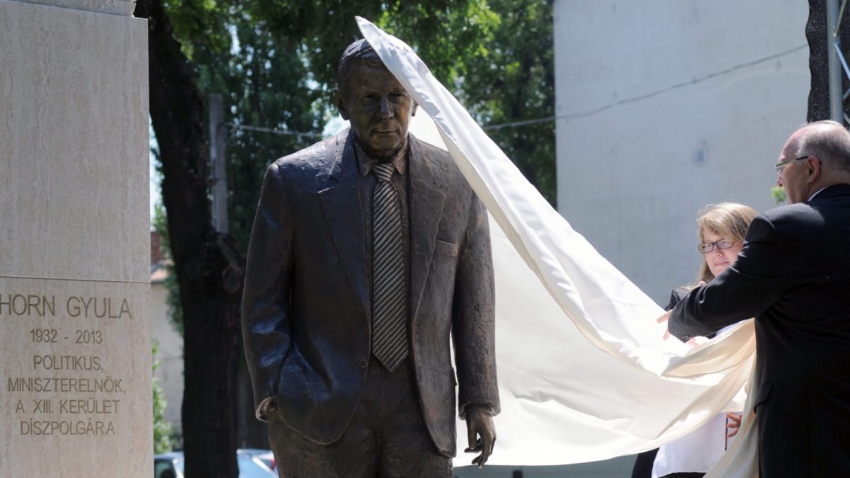 Nyitókép: Tóth József polgármester leleplezi Horn Gyula egykori szocialista miniszterelnök szobrát a XIII. kerületi Gyermek téren 2014. július 4-én. (fotó: MTI / Honéczy Barnabás)