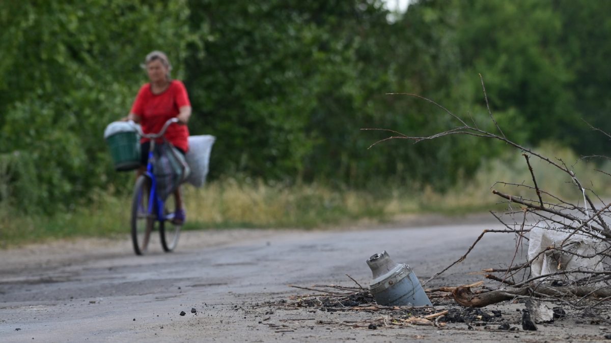 Nyitókép: Kerékpározó asszony Sziverszk mellett, az oroszok által rakétákkal lőtt országúton (fotó: Miguel Medina / AFP)