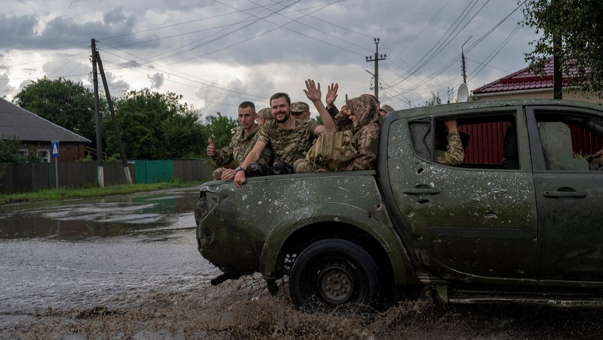 Nyitókép: a frontra tartó ukrán katonák a kelet-ukrajnai Szlovjanszkban (Bulent Kilic / AFP)