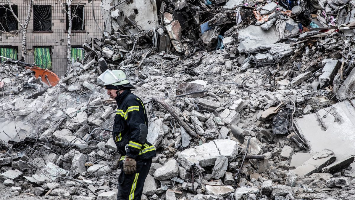 Nyitókép: túlélők után kutató tűzoltó egy orosz megszállók által elpusztított lakóépületnél a Kijev melletti Borogyankában 2022. április 13-án (fotó: Válasz Online/Vörös Szabolcs)