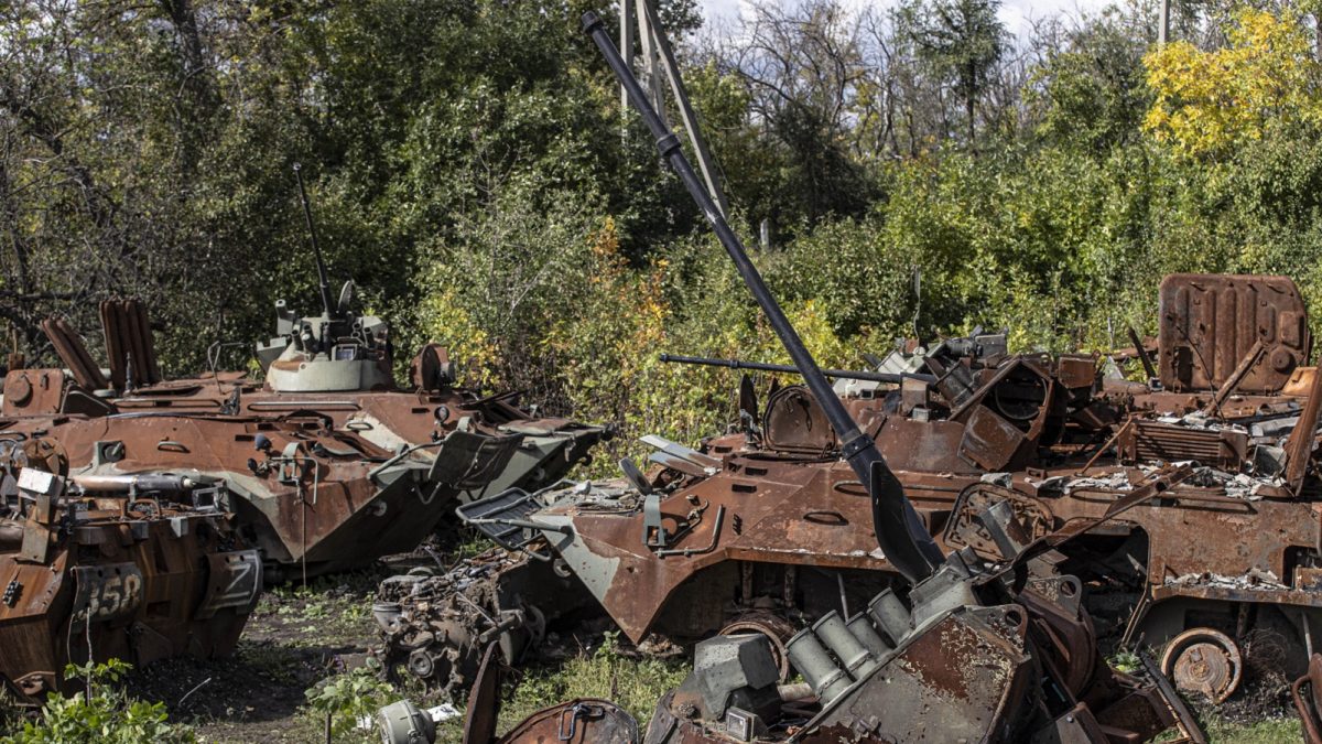 Nyitókép: Az oroszok által hátrahagyott harci járművek roncsai a felszabadított Izjumban (fotó: Metin Aktas / Anadolu Agency via AFP)