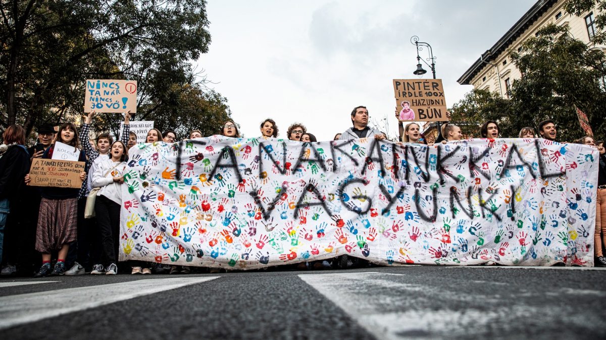 Nyitókép: a magyar közoktatás helyzete miatt tüntető diákok, tanárok és szülők a budapesti Andrássy úton 2022. október 14-én (fotó: Válasz Online/Vörös Szabolcs)