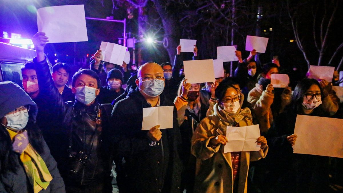 Nyitókép: a kínai kormány zéró-covid politikája elleni tüntetés Pekingben 2022. november 27-én (fotó: AFP/Jomiuri Simbun/Koki Kataoka)