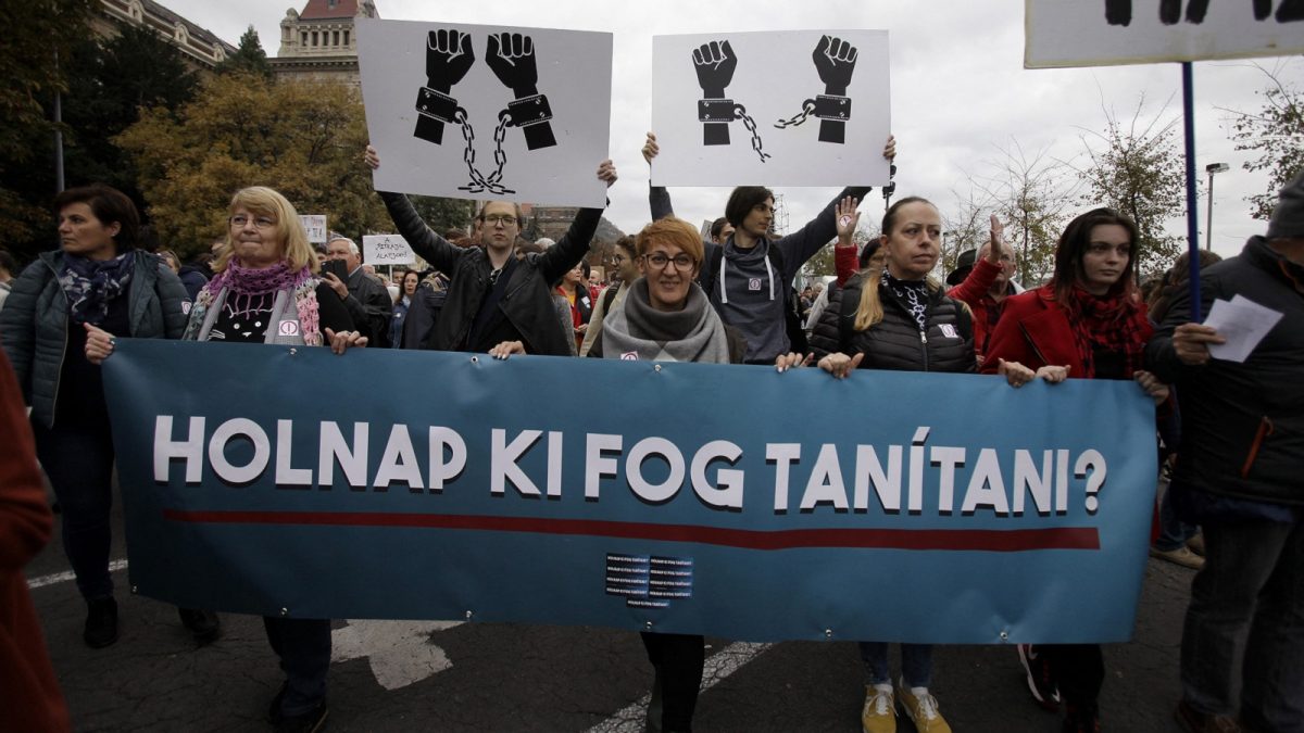 Nyitókép: tanártüntetés október 23-án (fotó: Kőhalmi Péter / AFP)