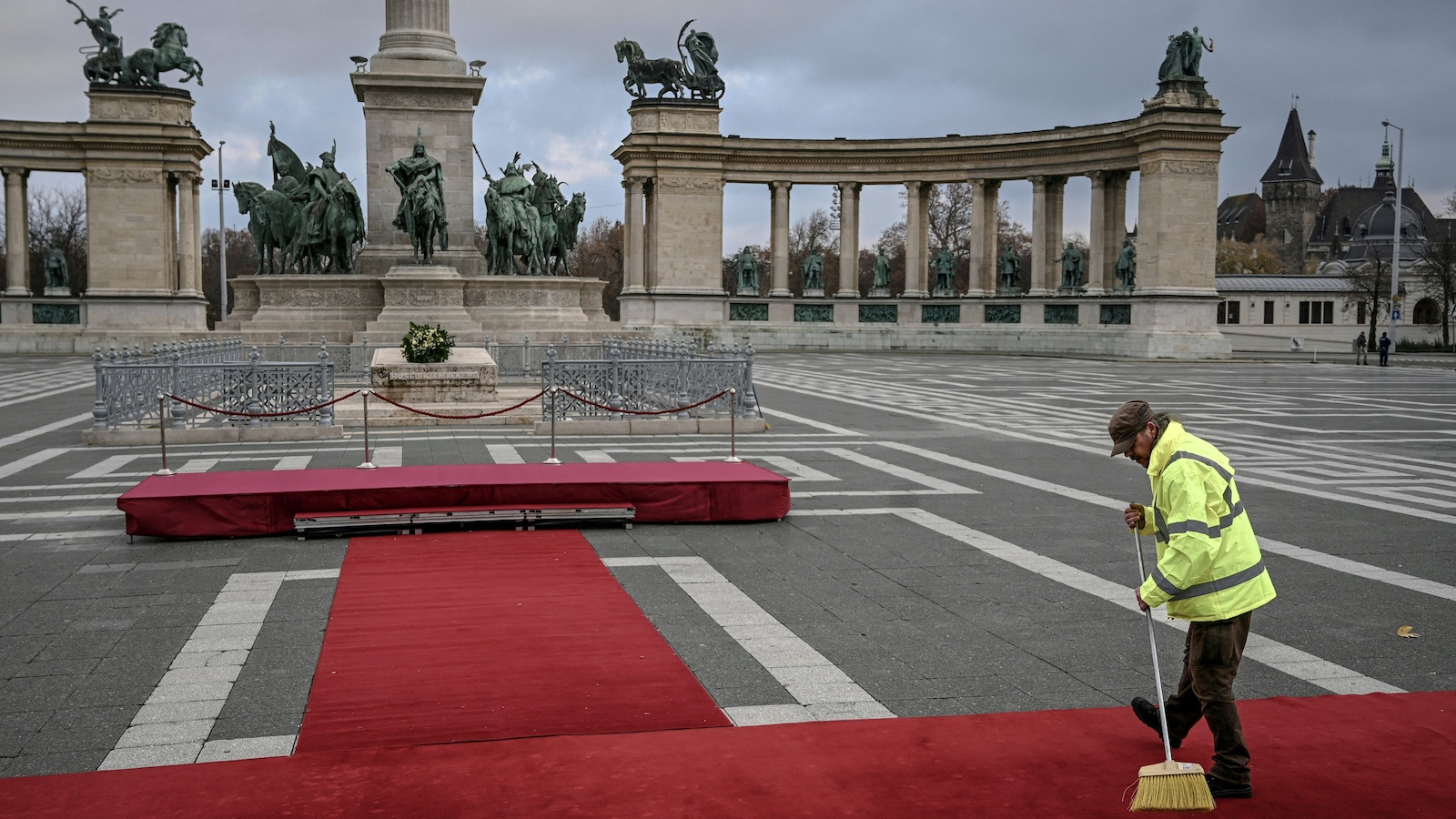 Nyitókép: takarítják a budapesti Hősök terét a visegrádi országok elnökeinek fogadási ceremóniája előtt 2021. november 29-én (fotó: AFP/Kisbenedek Attila)