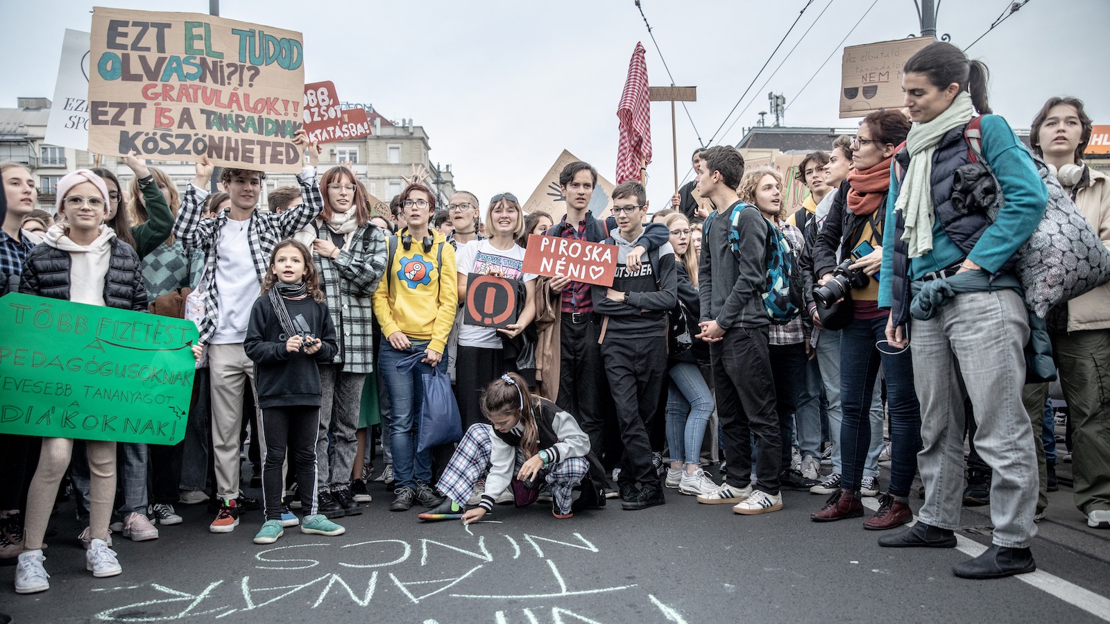 Nyitókép: a közoktatás helyzete miatt tüntető diákok a budapesti Margit hídon 2022. október 5-én (fotó: Válasz Online/Vörös Szabolcs)