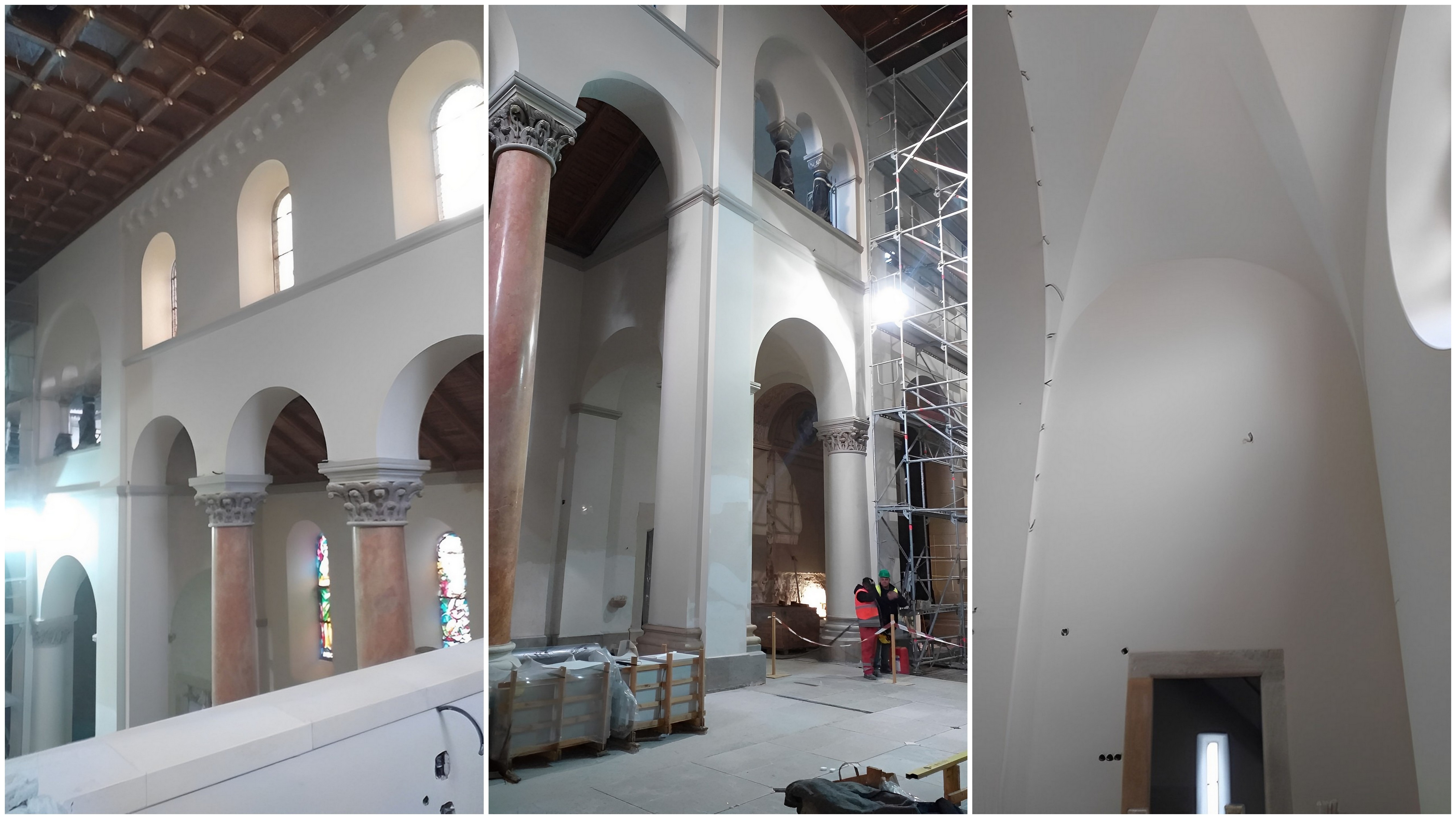 A műemléki értékleltár által megtartandónak vélt fehér és vörös márványburkolat sincs már a templomban, helyére az első látványterveken már látható fehér minimál stílushoz illeszkedő padló kerül.