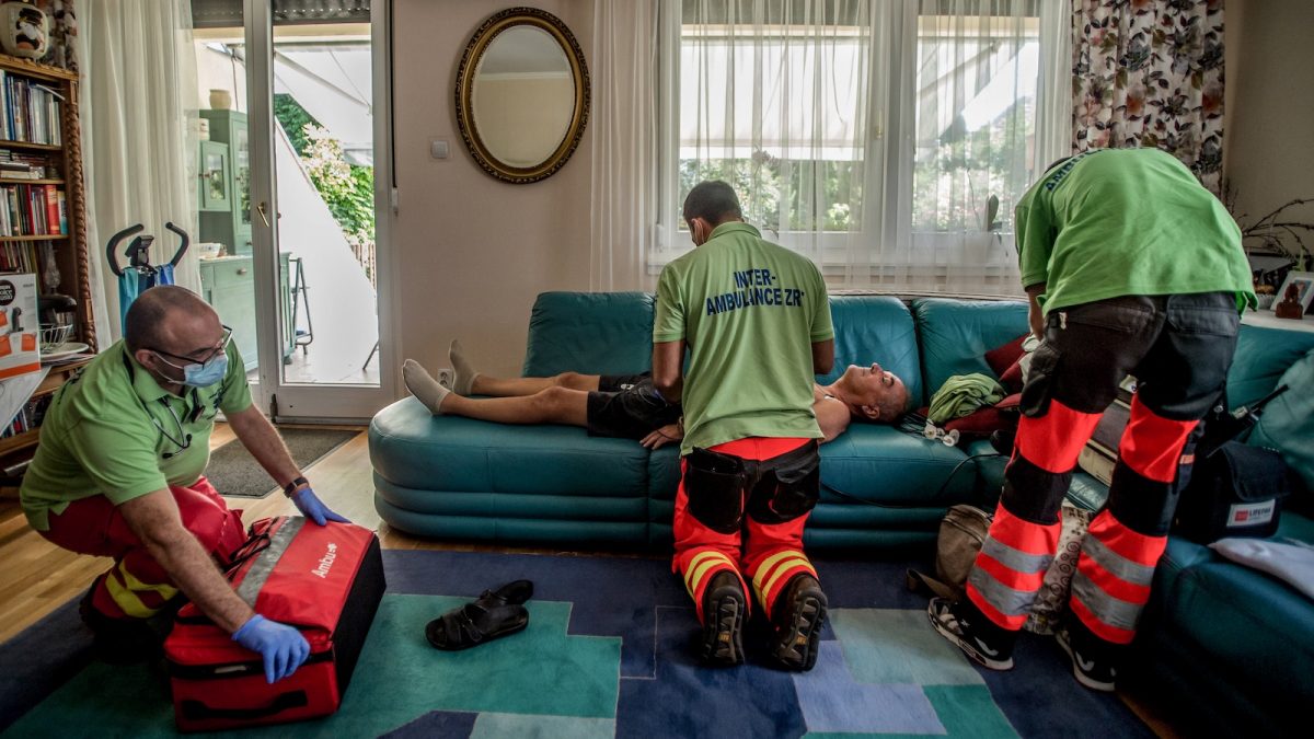 Nyitókép: Semes Asszaf szakorvos (b), Kovács Gábor állomás- és gépkocsivezető (j) és Molnár Tamás mentőápoló (k), az Inter-Európa Mentőszolgálat Kiemelten Közhasznú Nonprofit Kft. mobil intenzív mentőegységének munkatársai egy mellkasi panaszos beteget látnak el Újpesten 2020. augusztus 26-án (fotó: MTI/Balogh Zoltán)