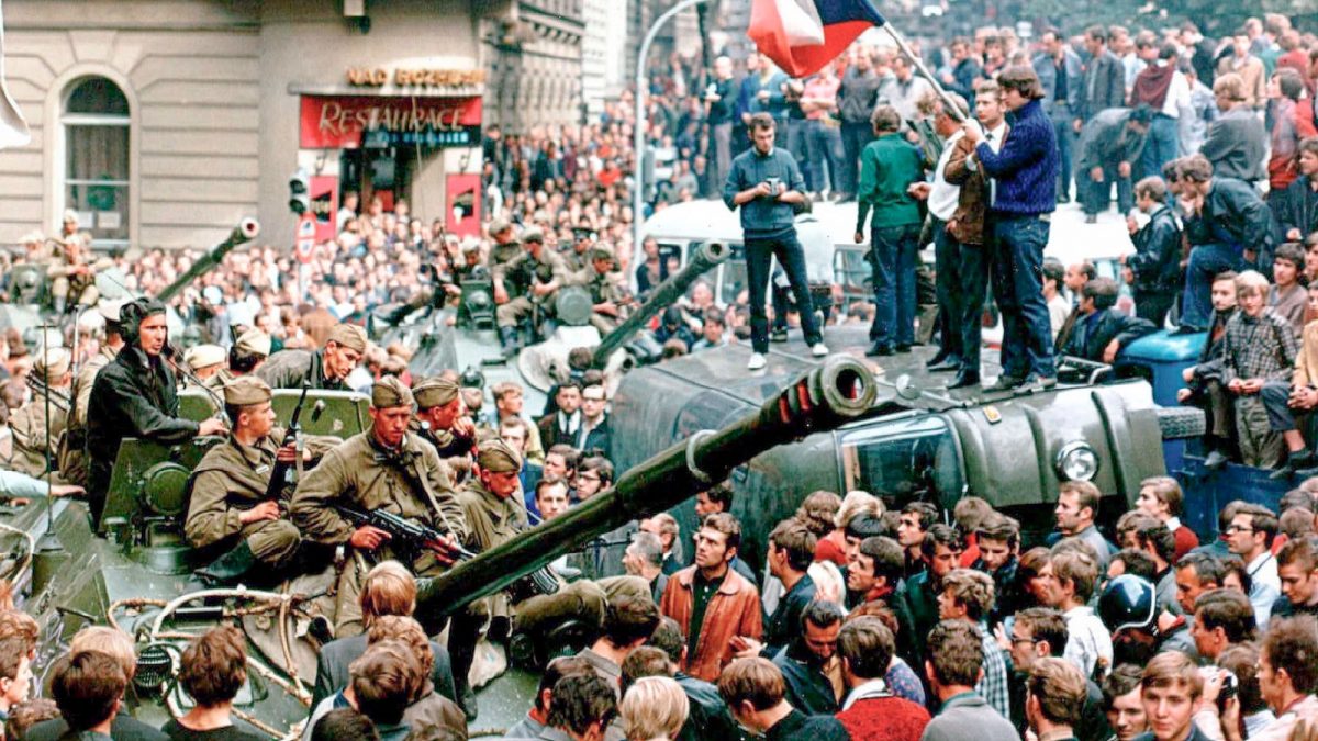 Nyitókép: cseh fiatalok nemzeti lobogót lengetnek egy felborított furgonon Prágában 1968. augusztus 21-én (fotó: MTI/EPA/CTK/Libor Hajsky)