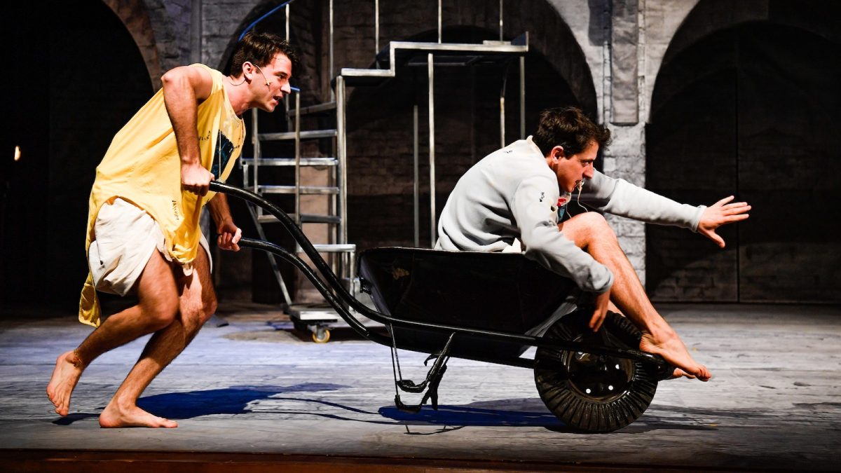 Nyitókép: Pálóczi Bence (b) Ifiklész és Csata Zsolt Periklész szerepében Mikó Csaba Herkules című mesejátékának próbáján a hajdúböszörményi Sillye Gábor Művelődési Központ színháztermében 2021. november 16-án. A darab ősbemutatóját a Lázár Ervin program részeként ezen a napon tartották Madák Zsuzsanna rendezésében (fotó: MTI/Czeglédi Zsolt)