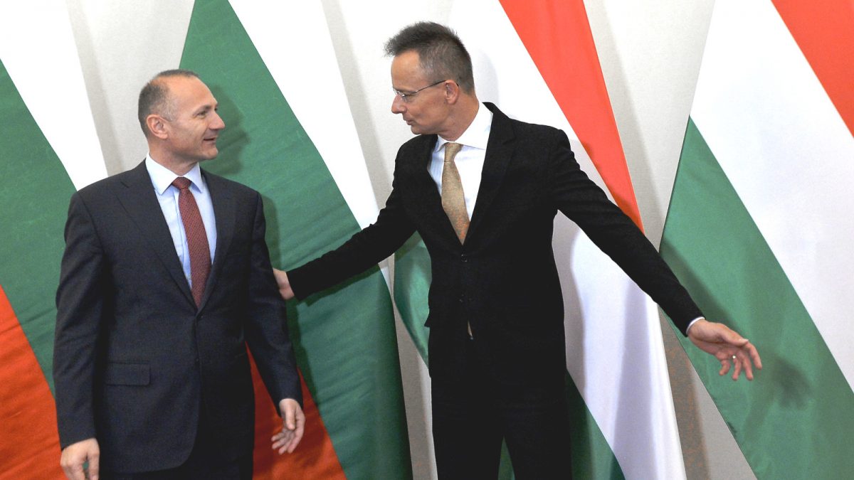 Nyitókép: Szijjártó Péter külgazdasági és külügyminiszter (j) hivatalában fogadja Roszen Hrisztov bolgár energiaügyi minisztert 2023. május 11-én. Forrás: MTI / Soós Lajos