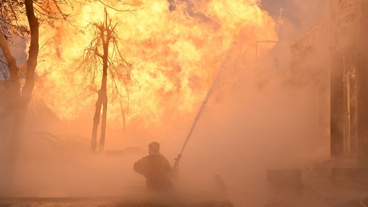 Nyitókép: tűzoltó küzd a lángokkal a Kijevet ért orosz rakétacsapás után január 2-án (fotó: Genya Savilov / AFP)
