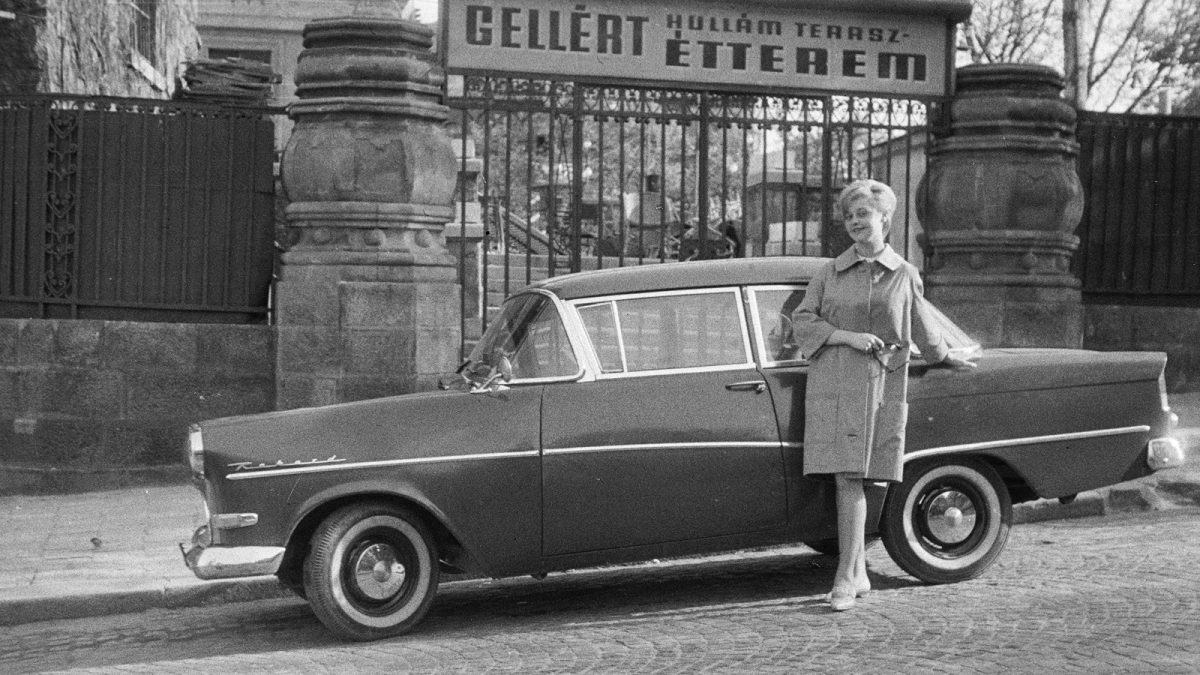 Nyitókép: Opel Rekord P1 gépkocsival pózoló fiatal nő a Gellért Szálló Hullám terasz-éttermének bejáratánál 1963-ban (fotó: Fortepan 278590 / Fábián József / Artfókusz)