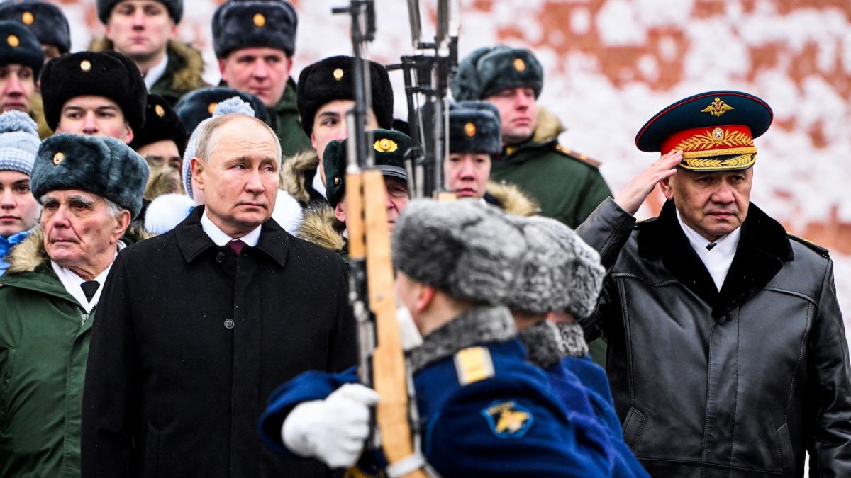 Nyitókép: Vlagyimir Putyin orosz elnök Szergej Sojgu védelmi miniszterrel a Kreml melletti ismeretlen katona-emlékműnél 2024. február 23-án (fotó: AFP/POOL/Sergei Savostyanov)