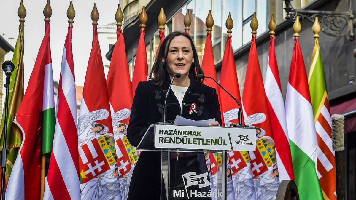 Nyitókép: Borvendég Zsuzsanna történész, a Mi Hazánk Mozgalom EP-képviselőjelöltje beszédet mond a pártnak az 1848-49-es forradalom és szabadságharc 176. évfordulója alkalmából tartott megemlékezésén a budapesti Pilvax közben 2024. március 15-én (fotó: MTI/Soós Lajos)