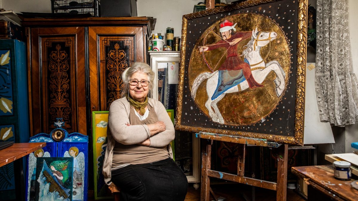 – A népművészet magától értetődő volt számomra és ahogy elmerültem a tanulmányozásában, automatikusan megismerkedtem a környező népek művészetével is. Kipróbáltam a zománcfestést, ikonokat festettem, közben Kallós Zoltánnal jártunk Erdélybe és lépésről lépésre zártam ki mindazt, amivel nem akartam foglalkozni, legyen szó technikákról vagy művészeti irányzatokról. A népművészet abban az időben menekülőút volt, hiszen így nem kellett szocreállá válni. Nem csak a szocreál, de a modernizmus is távol állt tőlem, a gótika viszont annál inkább megszólított – magyarázza Sinkó Veronika, majd személyes élményekről beszél.