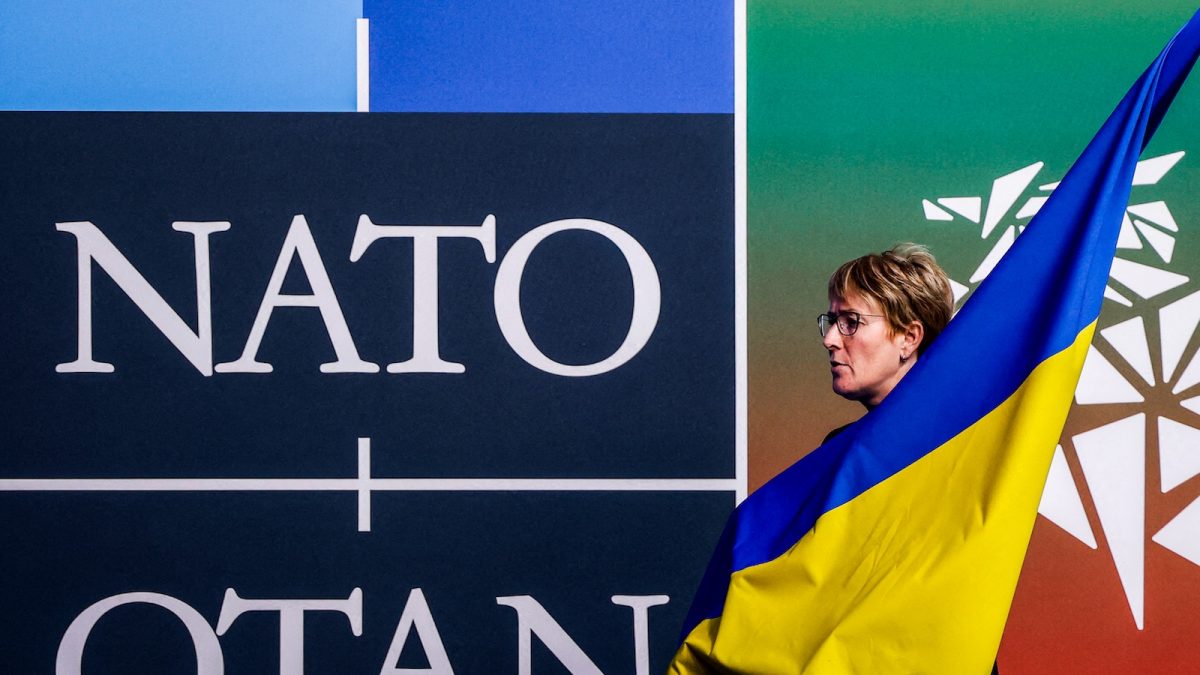 Nyitókép: az ukrán zászlót viszik az ülésterembe a NATO vilniusi csúcstalálkozóján 2023. július 12-én (fotó: AFP/Odd Andersen)