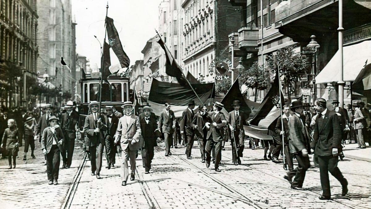 Nyitókép: tüntetés a háború mellett a budapesti Népszínház utcában 1914 nyarán (fotó: Müllner János / Fortepan 256073 / Országos Széchényi Könyvtár)