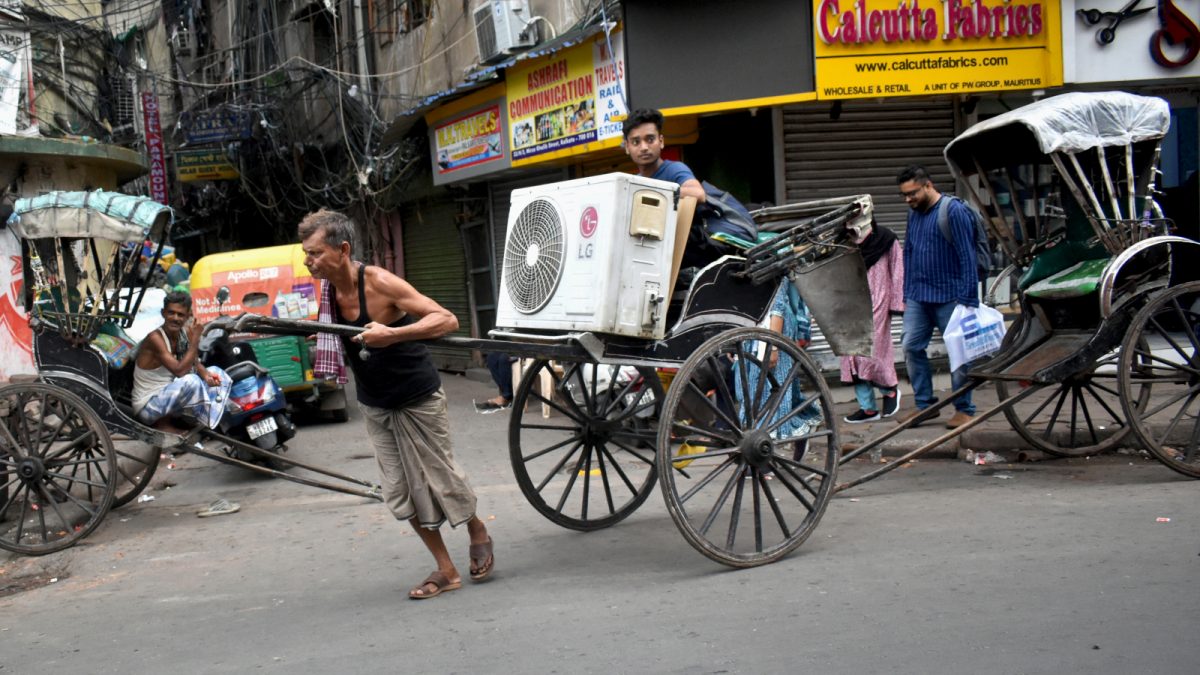 Nyitókép: Riksával cipelt légkondicionáló az indiai Kalkuttában, 2024 júliusában. Fotó: Sudipta Das / NurPhoto via AFP.