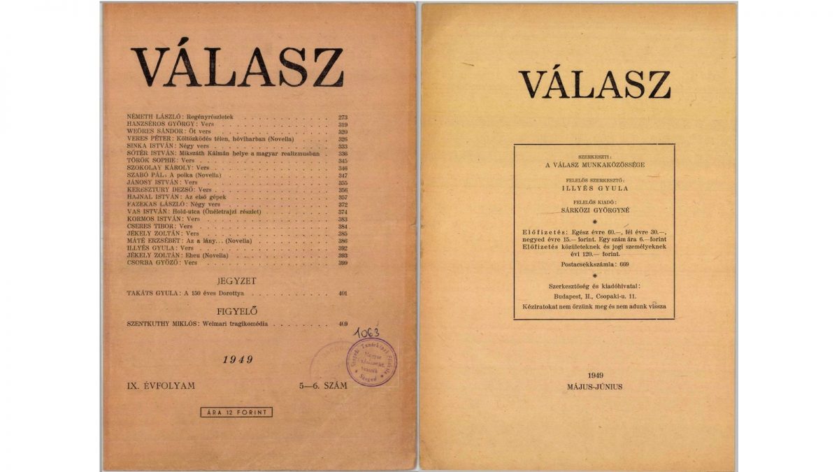 Nyitókép: a Válasz utolsó számának tartalomjegyzéke és impresszuma (forrás: Arcanum)