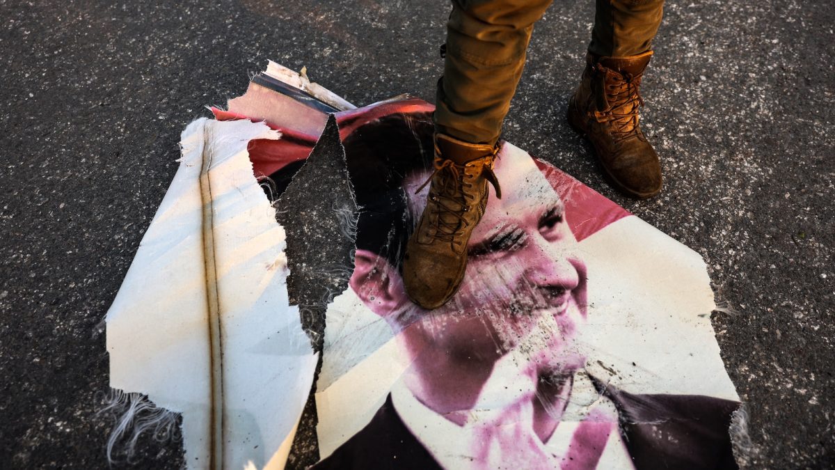 Nyitókép: szíriai felkelő katona Bassár el-Aszad elmenekült szír elnök portréján tipor Háma városában 2024. december 6-án (fotó: AFP/Mohammed al-Rifai)