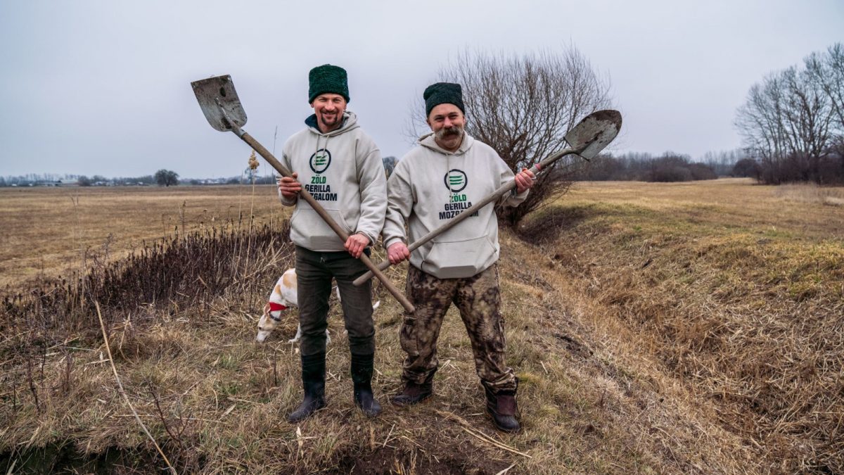 Nyitókép: Tarsoly Gyula és Kulcsár László a Zöld Gerilla 2025. januári árokbetemető akcióján (fotó: Borbás Barna / Válasz Online)