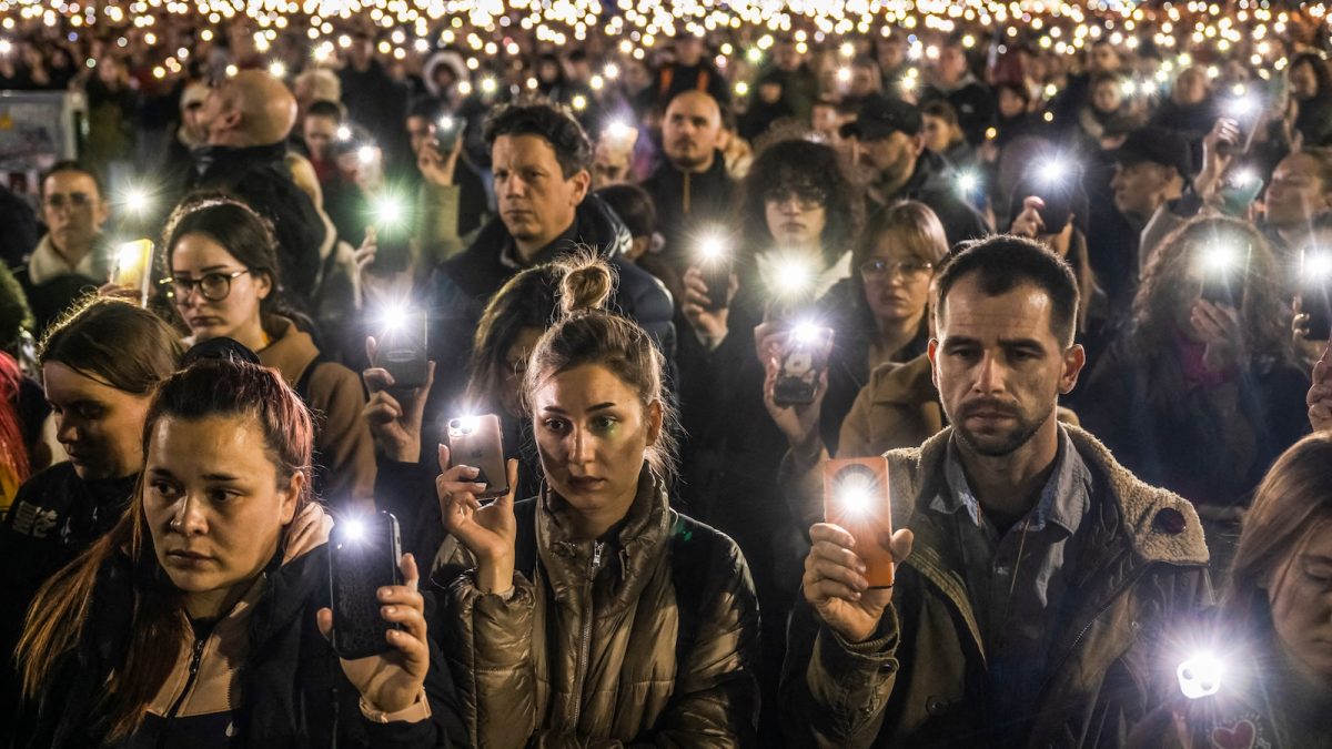 – A megértéshez kicsit távolabbról kell indítanom. A tömegdemonstrációk megszokottak Szerbiában, 2016 óta az emberek szinte minden évben tiltakoznak valamilyen ügy miatt. Kilenc éve a fővárosi Waterfront ingatlanprojekt miatt mentek ki a belgrádiak az utcára, ez az esemény nyitotta meg a tiltakozások sorát. A titokban letárgyalt, a városfejlesztési szabályokat megszegő óriásberuházás ahhoz a Mohamed Alabbarhoz köthető, aki most Budapesten tervez valami hasonlót. Demonstráltak az emberek 2023-ban két iskolai tömegmészárlás után, tavaly pedig nyáron egy hatalmas lítiumbánya ellen tüntettek. A megmozdulások jelezték demokratikus intézményrendszerünk működésképtelenségét, kiüresedését; a parlament például képtelen becsatornázni a különféle társadalmi konfliktusokat, és megoldásokat kínálni rájuk. Ebben a politikai környezetben történt az újvidéki pályaudvar egész országot megrázó katasztrófája, amikor is tizenöten lelték halálukat a nemrégen felújított állomásépület leszakadt beton tetőszerkezete alatt. Az emberek tudni akarták, hogy milyen gondatlanság, korrupció áll a propagandaokokból kétszer is felavatott állomás tragédiája mögött. Az általános politikai környezet, az újvidéki eset súlyossága mellett még egy harmadik tényező kellett a demonstrációk kiszélesedéséhez. A Színművészeti Főiskola tiltakozó hallgatóit november 22-én megtámadták a kormányzó Szerb Haladó Párthoz (SNS) köthető személyek. Ez olaj volt a tűzre, a diákok országszerte utcára vonultak. Ha nincs a támadás, aligha válhatott volna a mozgalom ilyen kiterjedtté, s nem kapott volna még erőteljesebb politikai színezetet.