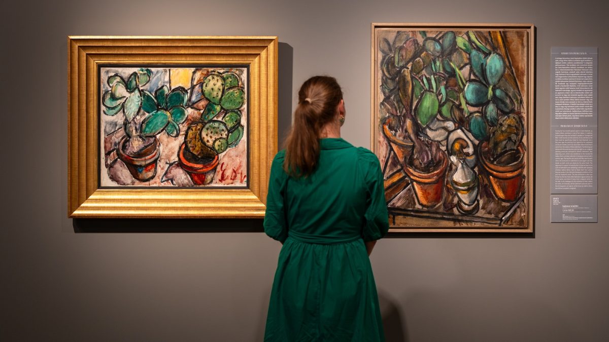 Nyitókép: részlet a kiállításból, a falon Dénes Valéria két kaktuszcsendélete (fotó: Szántó András / Szépművészeti Múzeum – Magyar Nemzeti Galéria