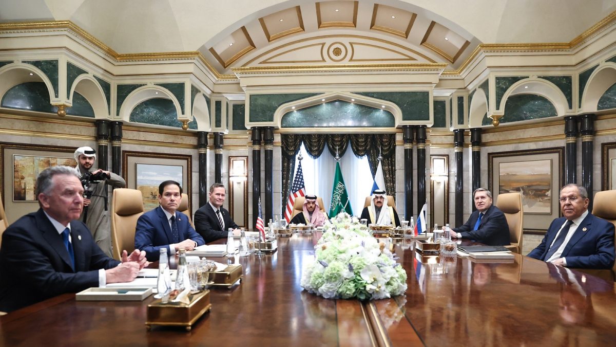 Nyitókép: az amerikai és az orosz delegáció Rijádban (fotó: Russian Foreign Ministry / Hando / Anadolu via AFP)