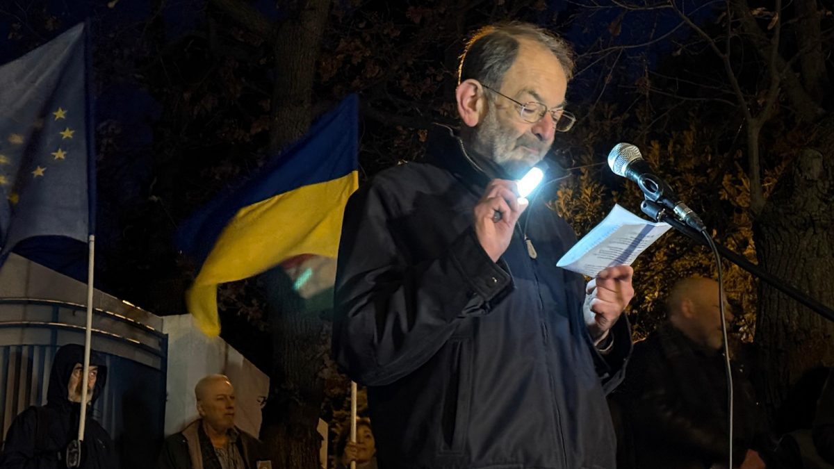 „Van és lesz egy másik Magyarország” – Lányi András beszéde az ukrán követség előtt